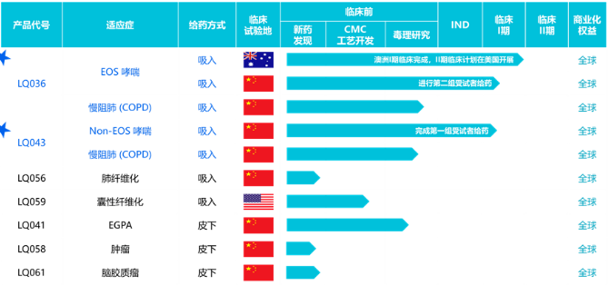 DB电子官网生物的研发管线中,还包括治疗肺纤维化的LQ056和治疗囊性纤维化的LQ059,同样采用吸入给药。